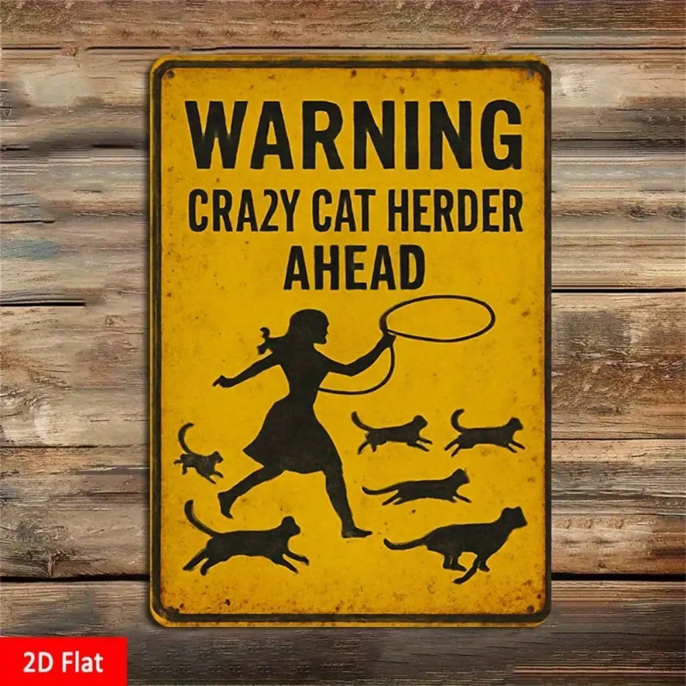1PC "Warning Crazy Cat Herder Ahead" Tin Sign