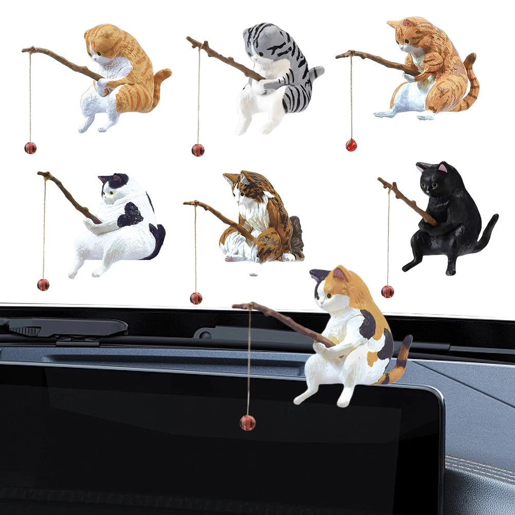 Fisherman Figurine Cat: Sitting Fishing Little Cat Ornament