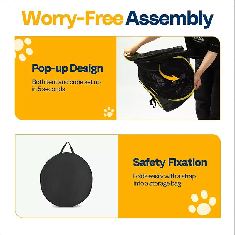 Outdoor Cat Enclosures 2-in-1, Portable Catio w/Cat Tent, Circle Playpen Tunnel